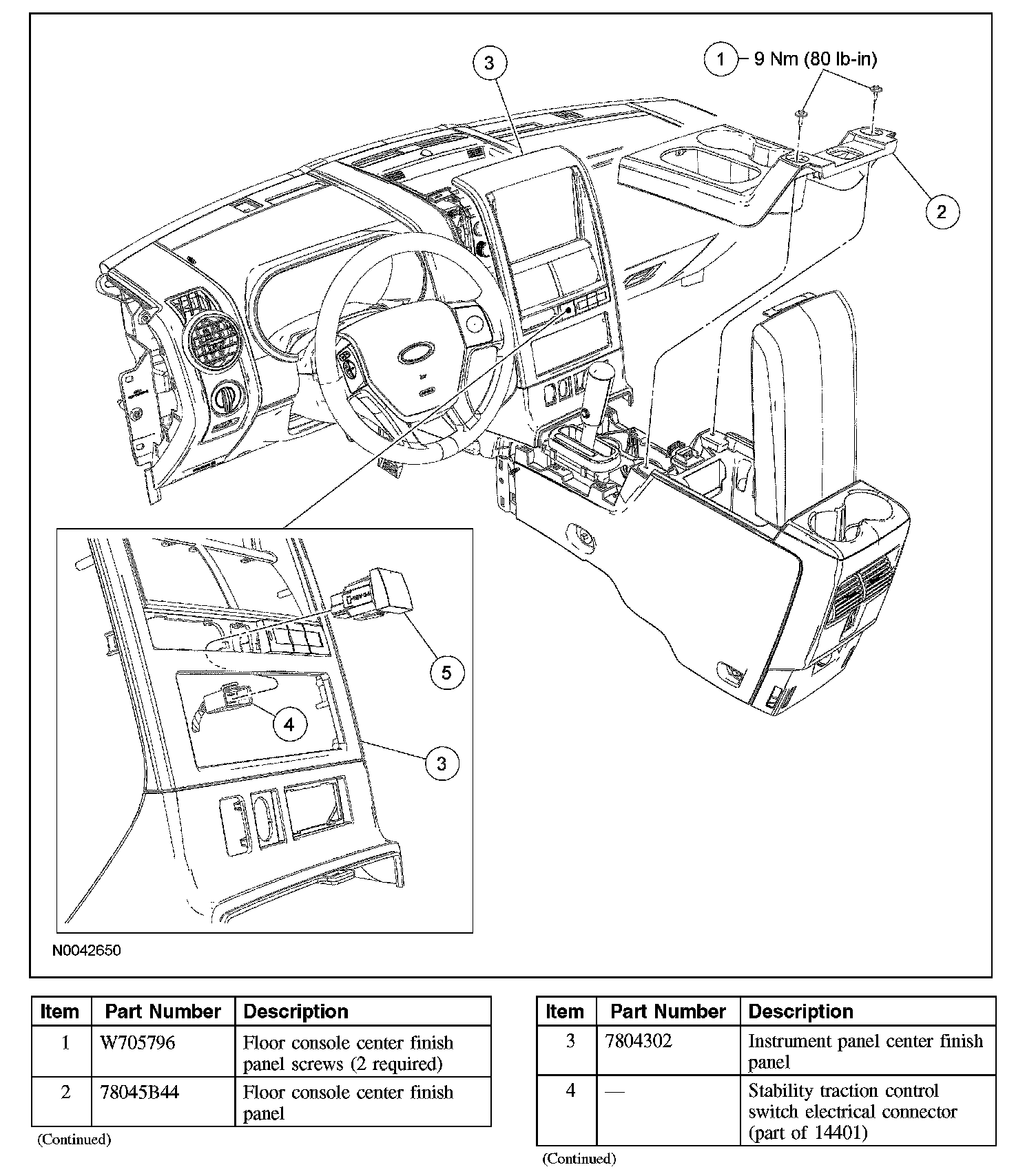 1. Remove the 2 floor console center finish panel screws and the floor console center finish panel.