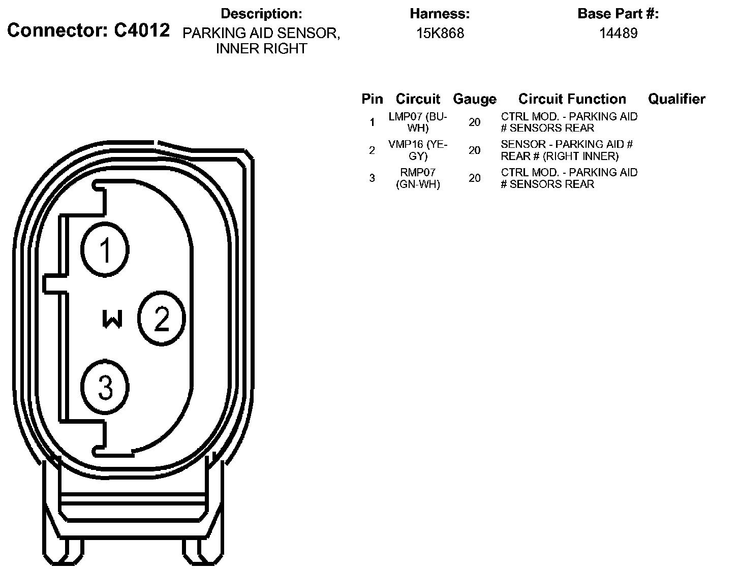 Parking Aid Sensor, Inner Right