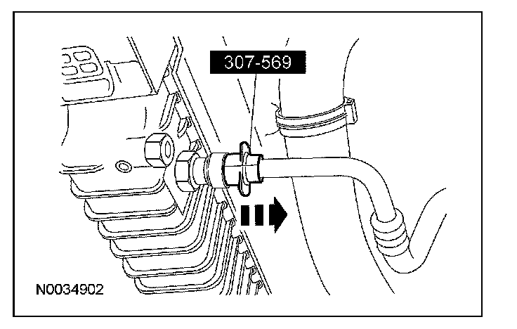 12. Using the special tool, disconnect the transmission cooler tubes.
