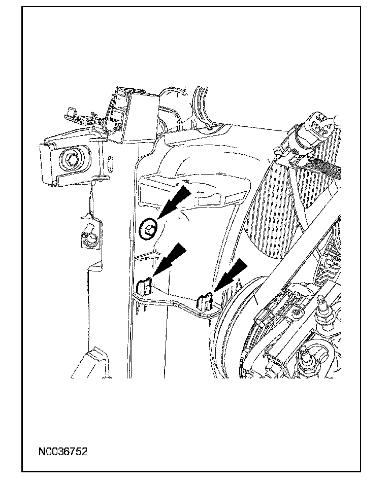 10. Remove the 4 lower radiator air deflector pushpins.