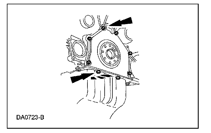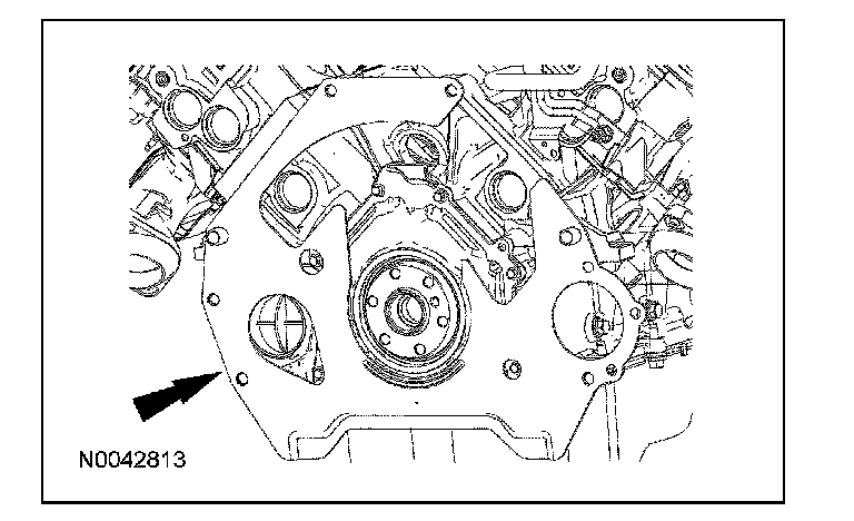 CAUTION: During engine repair procedures, cleanliness is extremely important. Any foreign material, including any material created while cleaning gasket surfaces that enters the oil passages, coolant passages or the oil pan, may cause engine failure.
