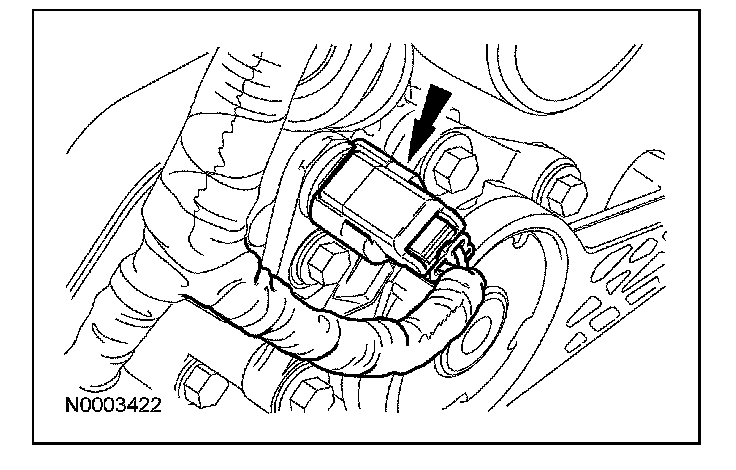 8. Disconnect the crankshaft position sensor electrical connector and detach the wiring harness retainer.