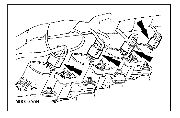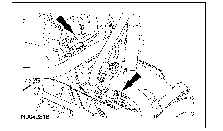 Disconnect the RH and LH variable camshaft timing (VCT) solenoid electrical connectors.