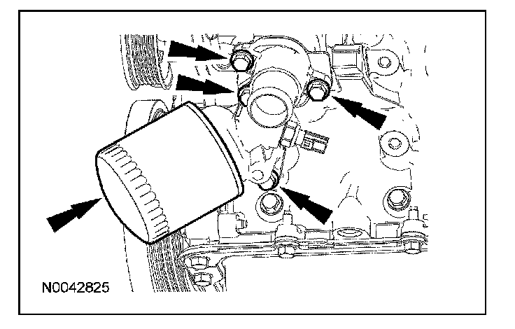 28. Remove and discard the oil filter. Remove the bolts and the oil filter adapter.