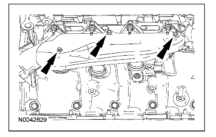 29. Remove the bolts and the LH exhaust manifold heat shield.