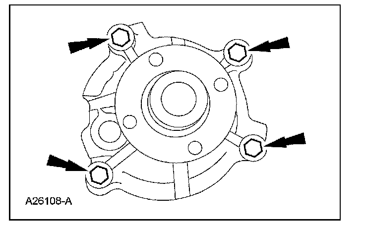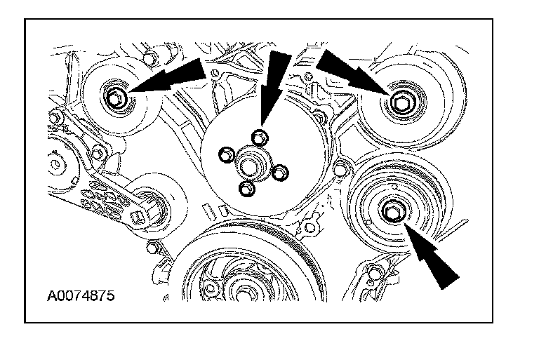 42. Remove the 7 bolts, the coolant pump pulley and the 3 accessory drive belt idler pulleys.