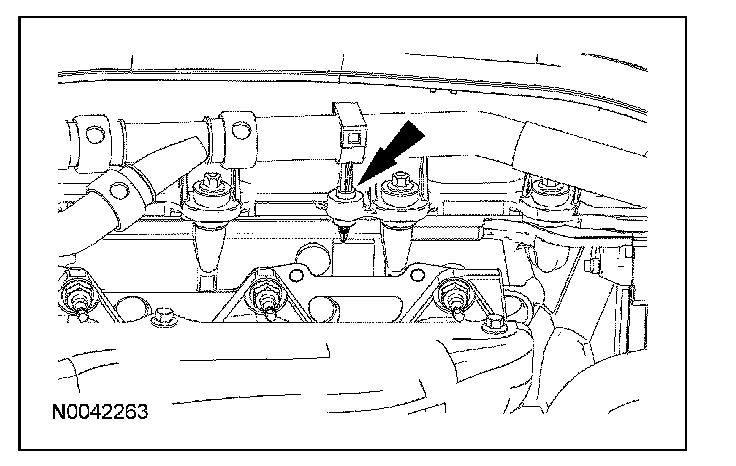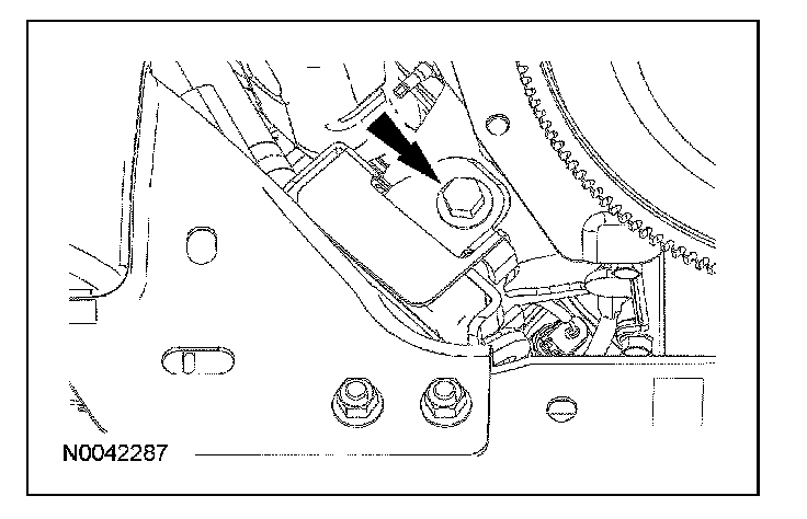 7. Position the battery cable bracket on the RH engine support insulator bracket and install the bolt.