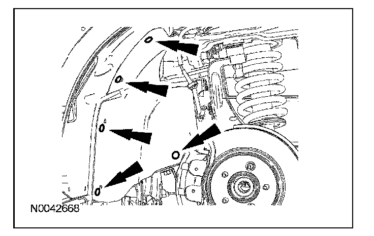 17. Position the inner fender splash shield and install the 3 pushpins and 3 screws.