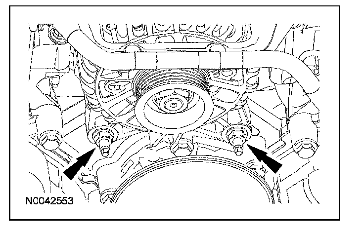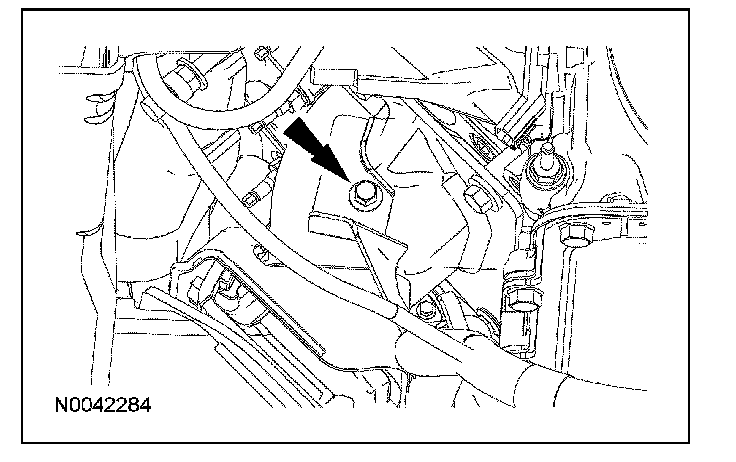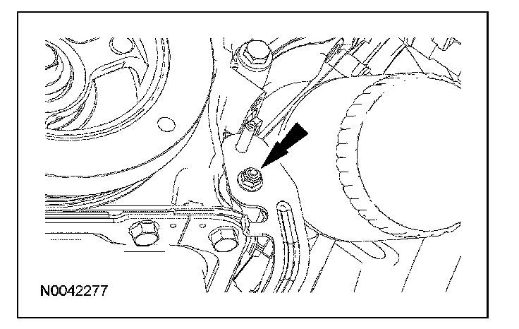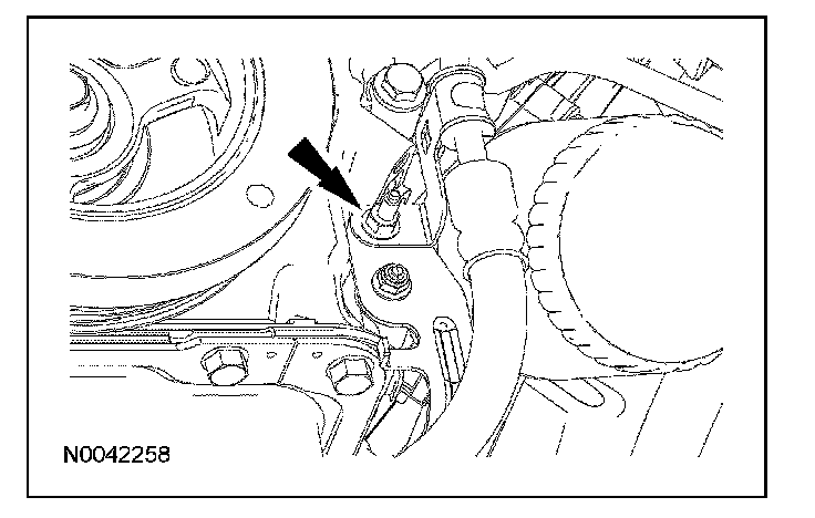 13. Attach the wiring harness retainer to the power steering pump stud bolt.