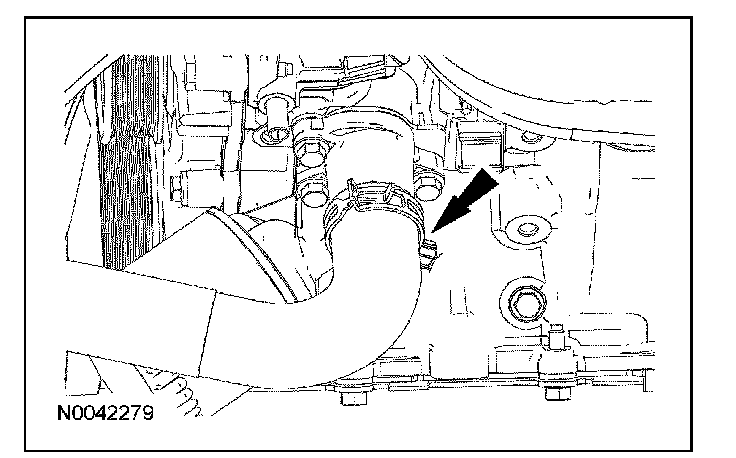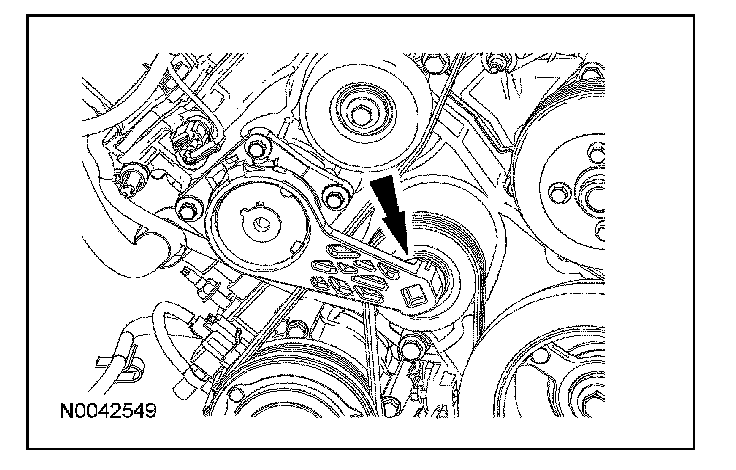 32. Rotate the accessory drive belt tensioner clockwise and install the accessory drive belt.