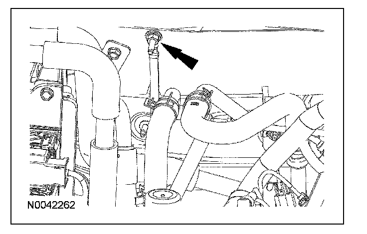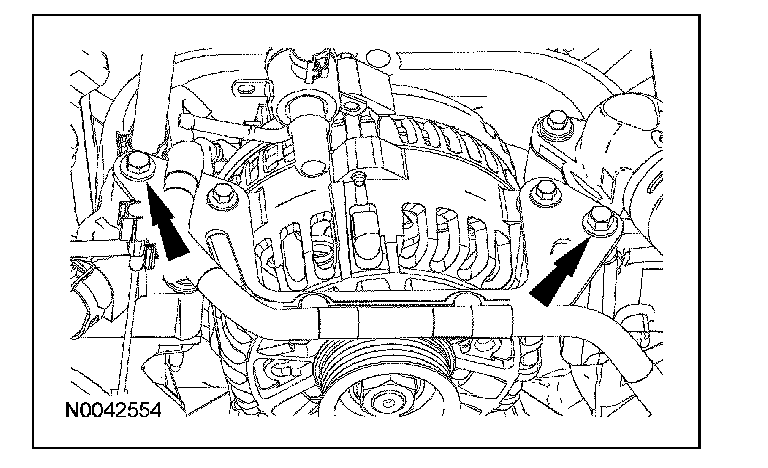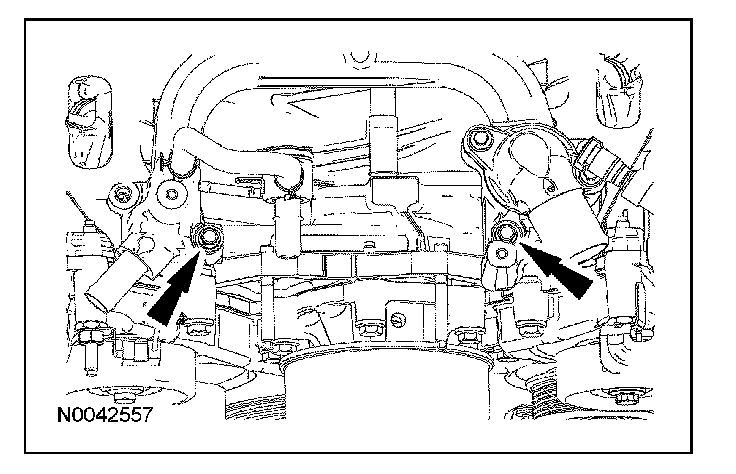 24. Position new gaskets, the coolant crossover, the heated PCV fitting and the heated PCV fitting hose as an assembly and install the bolts.