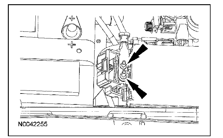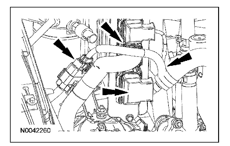 21. Attach the wiring harness pin-type retainer, and connect the 2 PCM electrical connectors and the in-line electrical connector.