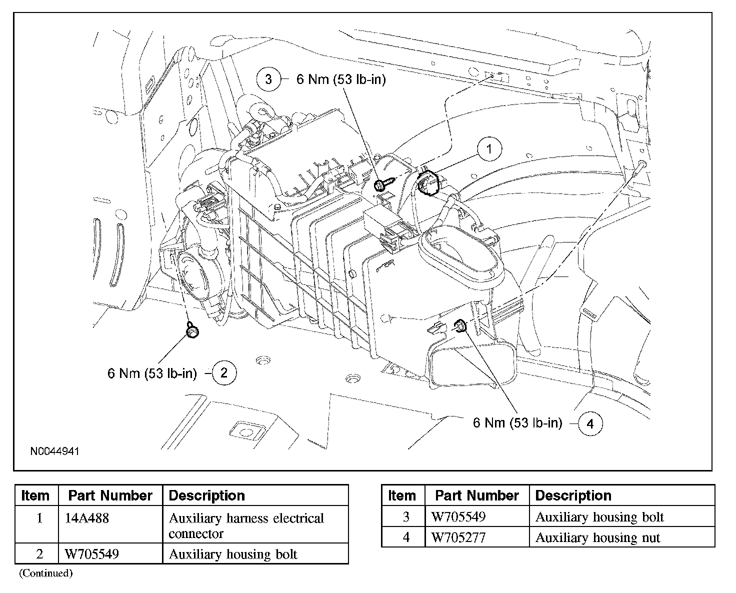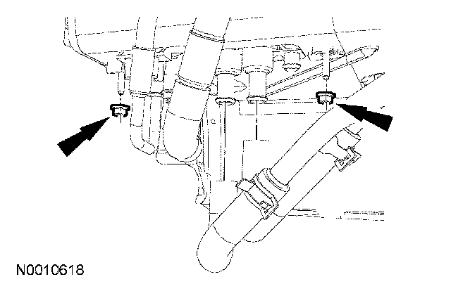 5. Remove the 2 auxiliary line floorpan bracket nuts.