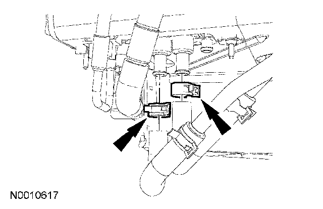 3. Release the 2 heater hose clamps and disconnect the heater hoses.