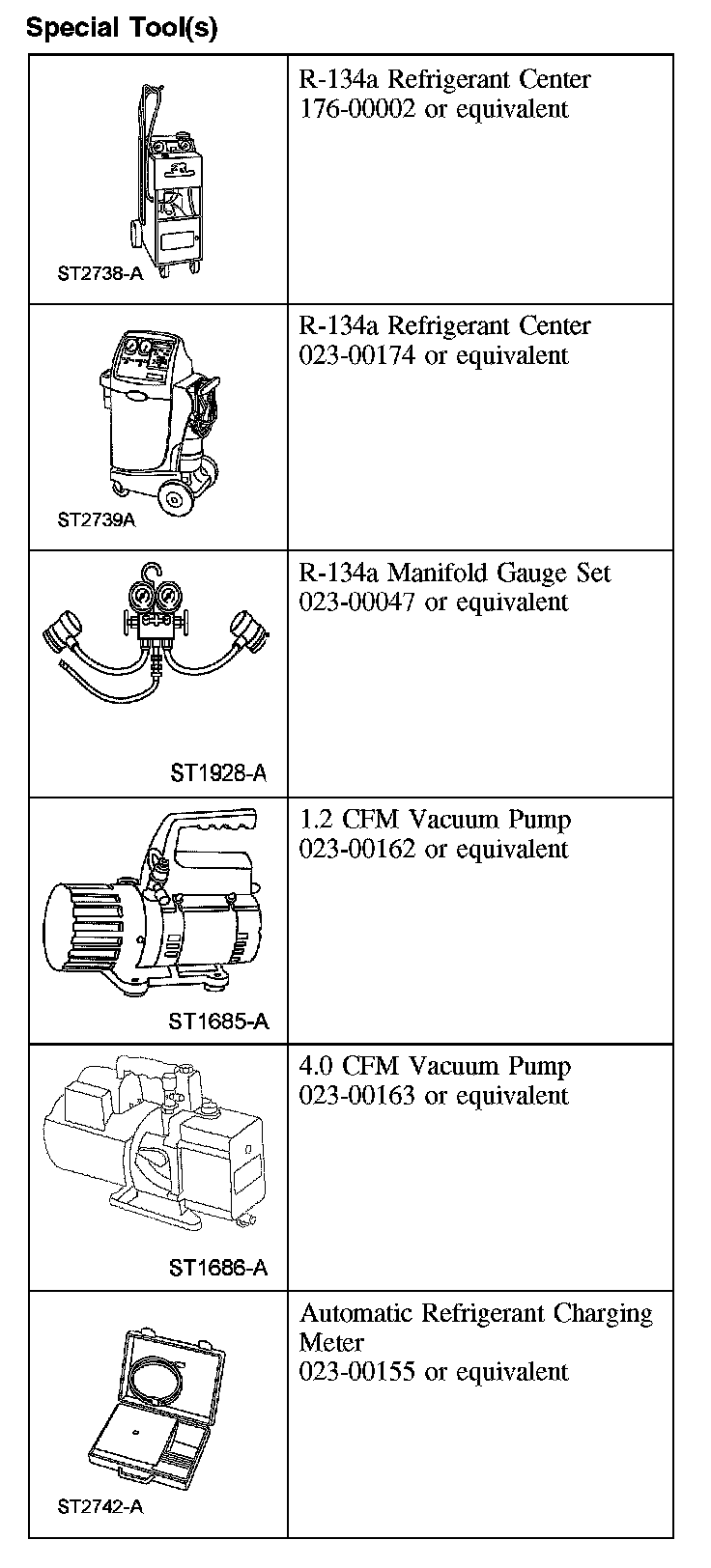 AIR CONDITIONING (A/C) SYSTEM RECOVERY, EVACUATION AND CHARGINGSpecial Tool(s)