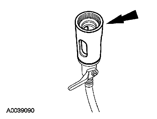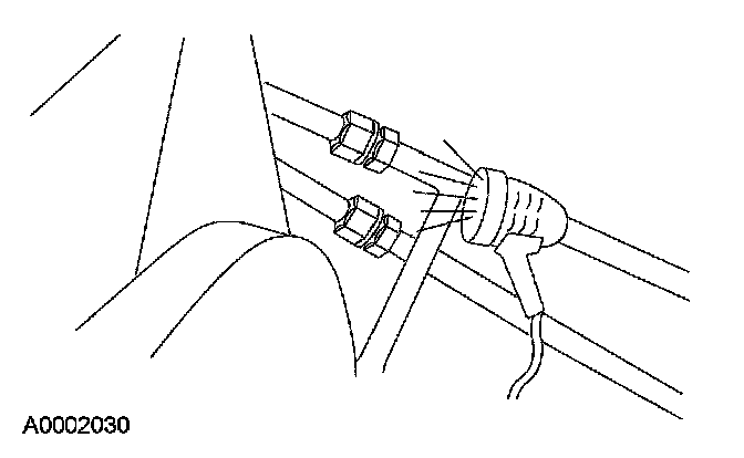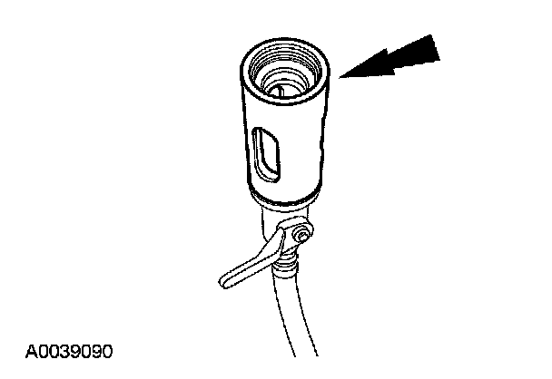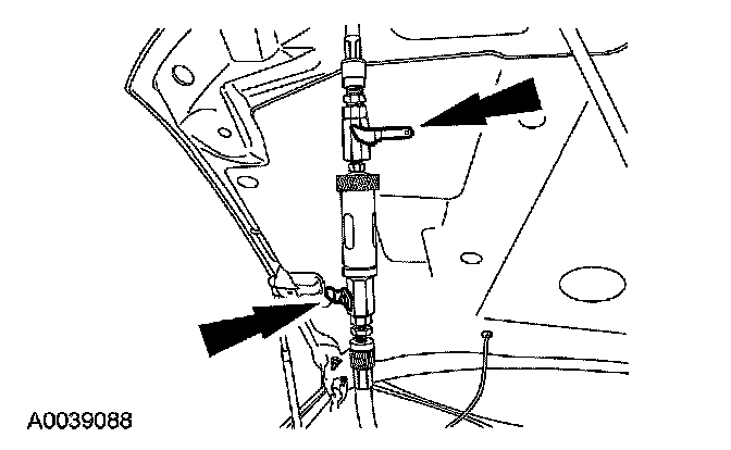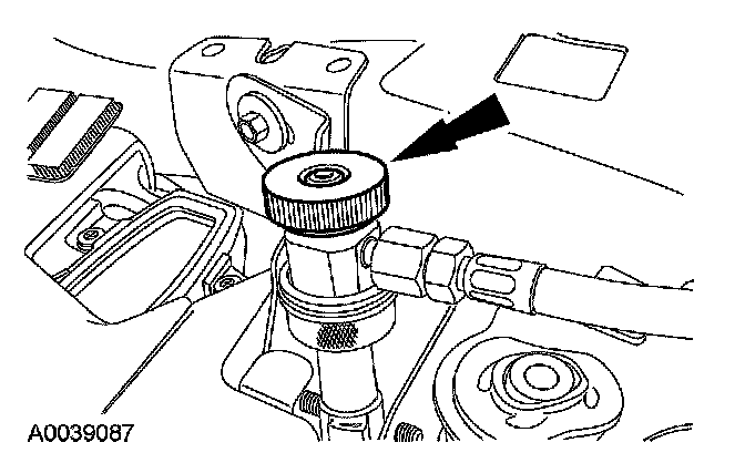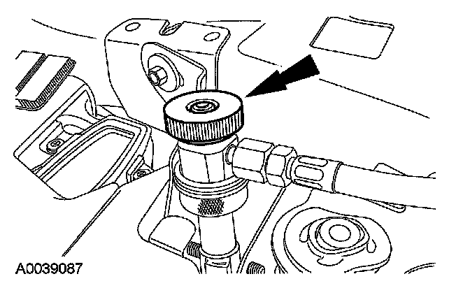 8. Remove the fluorescent dye injector from the low-pressure service gauge port valve and the R-134a A/C refrigerant service center or manifold gauge set.