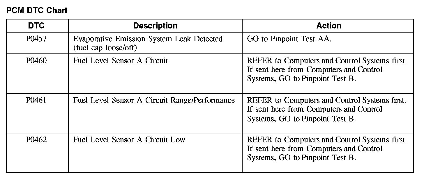 PCM DTC Chart
