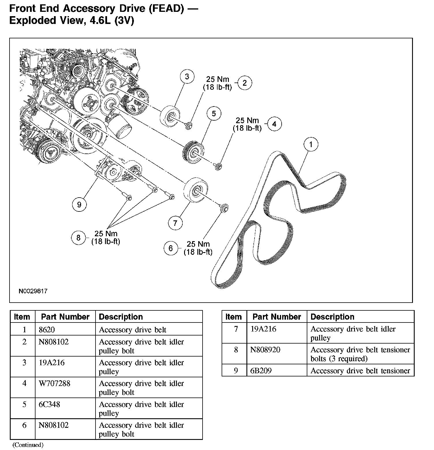 Accessory Drive Belt - 4.6L (3V)Front End Accessory Drive (FEAD) - Exploded View, 4.6L (3V):