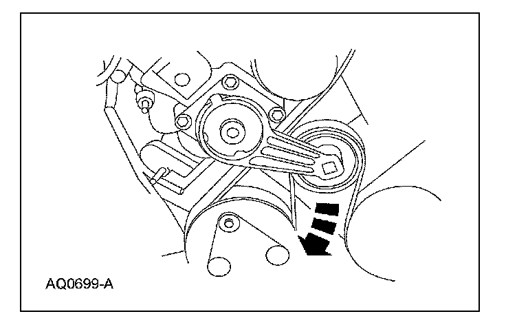 3. Rotate the accessory drive belt tensioner clockwise and detach the belt from the generator pulley.