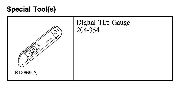 4. NOTE: Use only special tool 204-354 any time tire pressures are measured to make sure that accurate values are obtained.