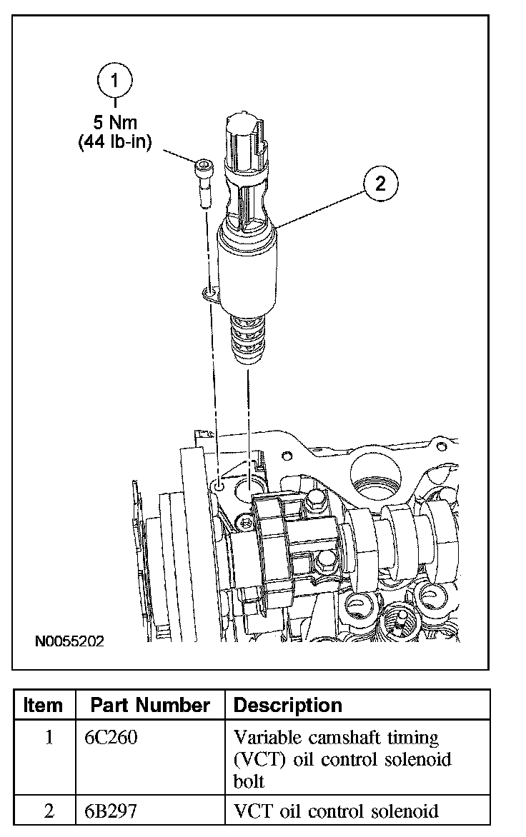 VARIABLE CAMSHAFT TIMING (VCT) OIL CONTROL SOLENOIDRemoval and Installation