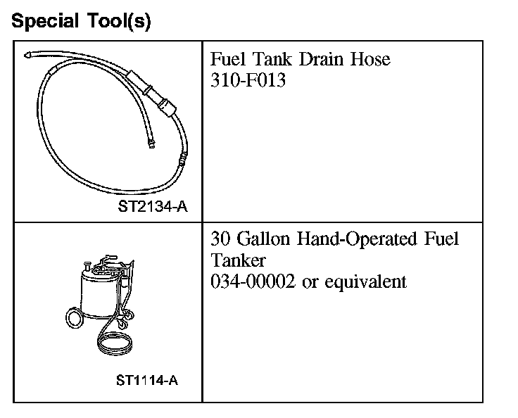 9. Using the special tool and the fuel tanker, siphon the fuel from the fuel tank.