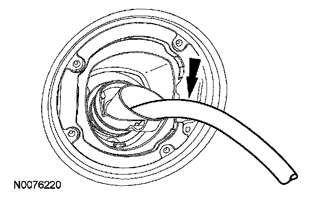 Insert a suitable fuel drain tube through the refueling adapter and into the fuel tank filler pipe until it stops.