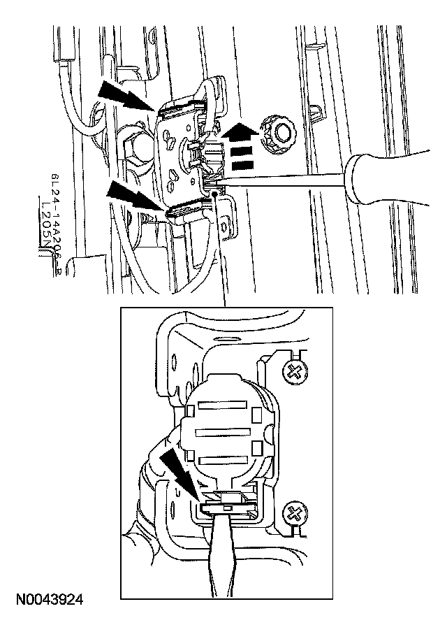 - If equipped with a power seat track, apply power and ground to the pins shown.