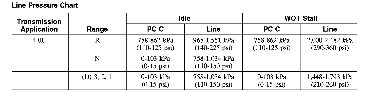 Line Pressure Chart