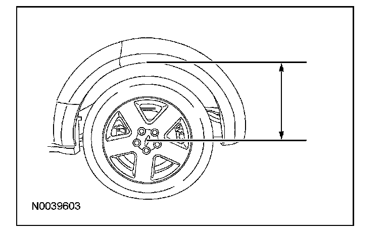 6. Using a suitable jack, raise the suspension until the distance between the center of the hub and the lip of the fender is equal to the measurement taken in Step 1 (curb height).