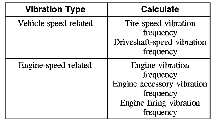 After carrying out the road test as described, the vibration was determined to be either vehicle-speed related or engine-speed related. That determination will identify the vibration frequency calculations that should be done.