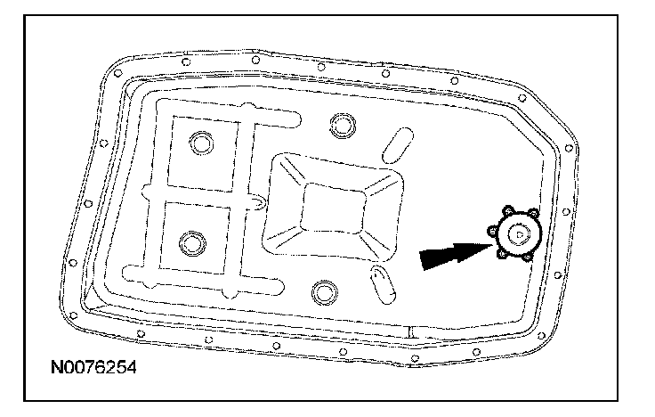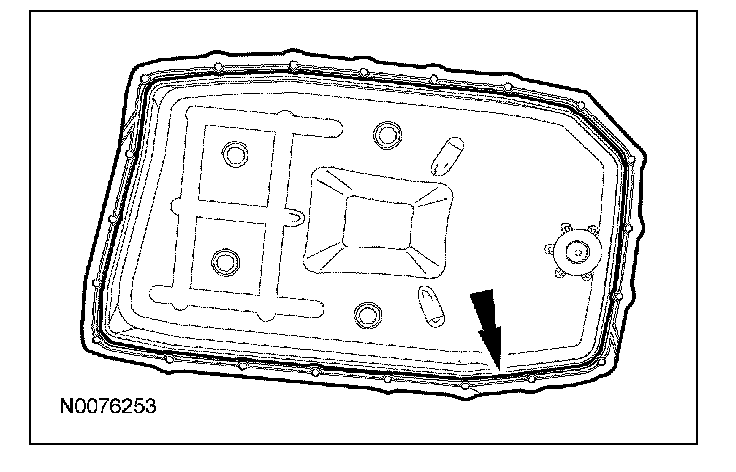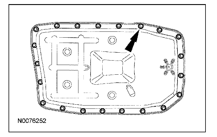 6. Install the transmission fluid pan and tighten the bolts in a crisscross pattern.