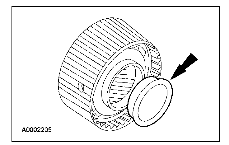 34. Install the No. 6B forward clutch thrust washer onto the forward ring gear hub.