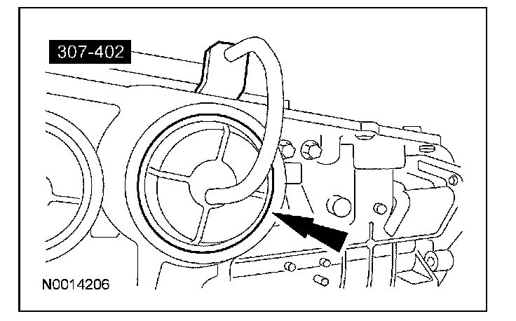 1 Install the special tool and the bolts using the 2 pump screw locations at approximately 6 and 12 o'clock positions.