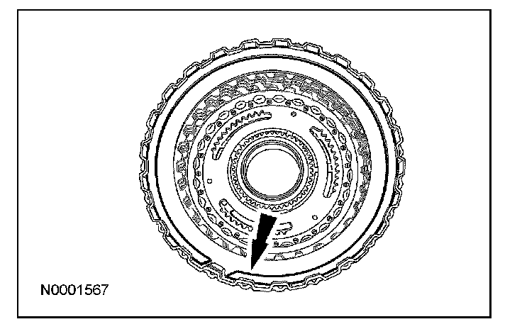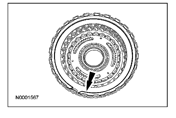 15. Rotate the forward clutch assembly 180 degrees from the opening of the snap ring, take a second reading and record this reading as reading B.