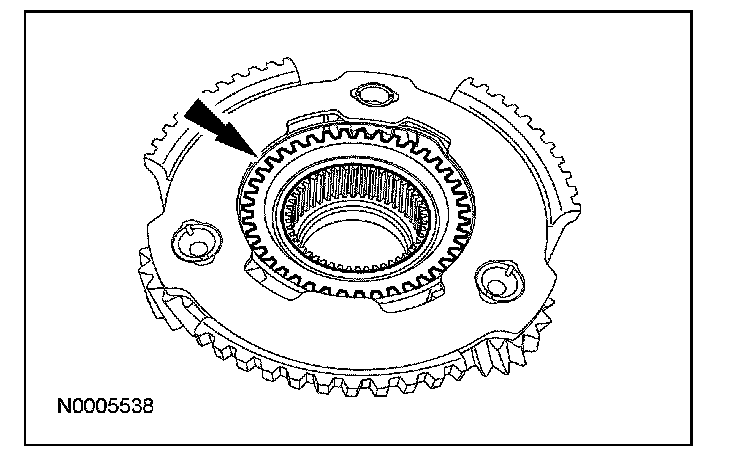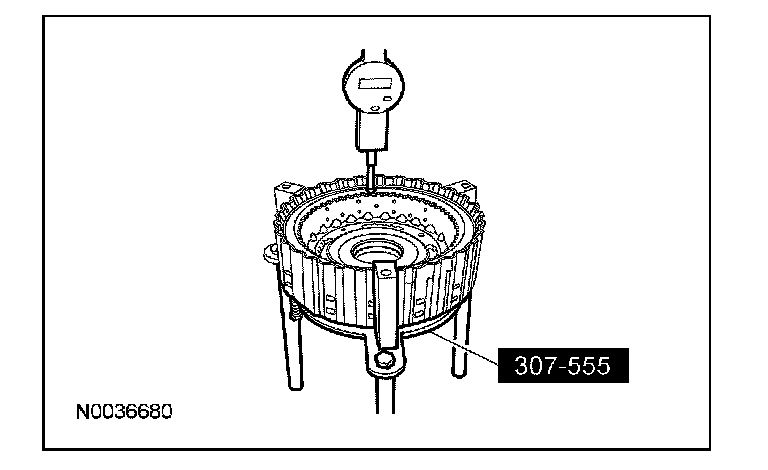 Install the forward clutch assembly into the special tool so the dial indicator fits into the opening of the snap ring.