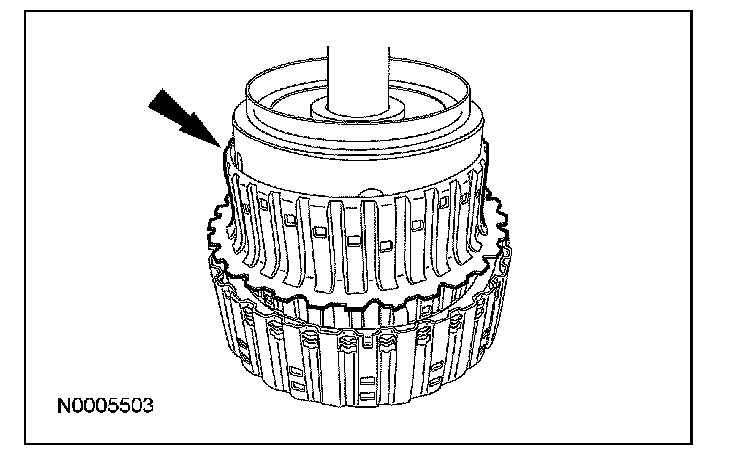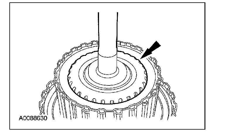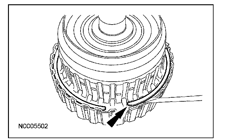 6. Install the direct clutch outer shell retaining ring.