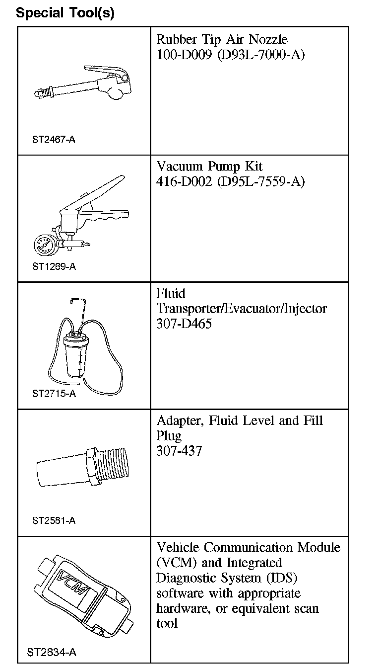 4. NOTE: Prior to filling the special tool with clean transmission fluid, make sure that the canister is clean.