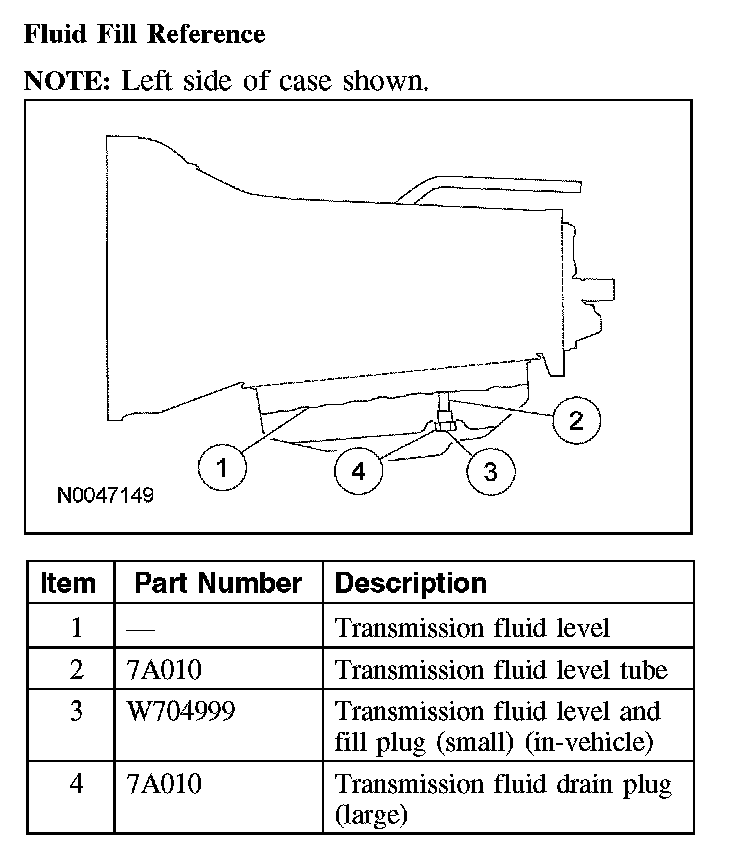 Transmission Fluid Drain and Refill -Without Torque Converter Drain PlugFluid Fill Reference