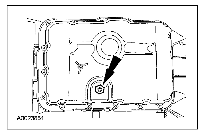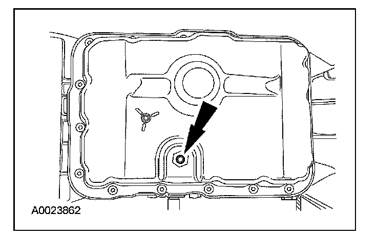 2. Remove the transmission fluid drain plug (large plug) and allow the fluid to drain.