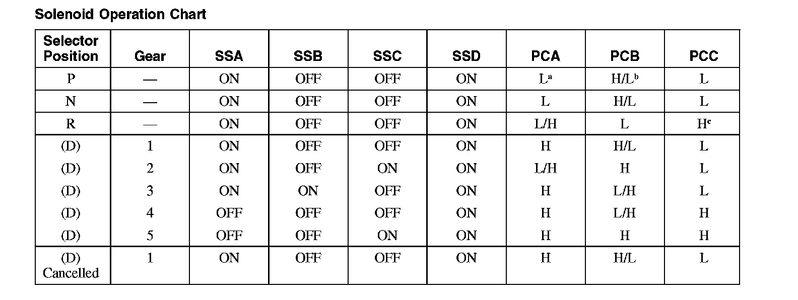 Use the following shift solenoid operation information when carrying out Pinpoint Test A.