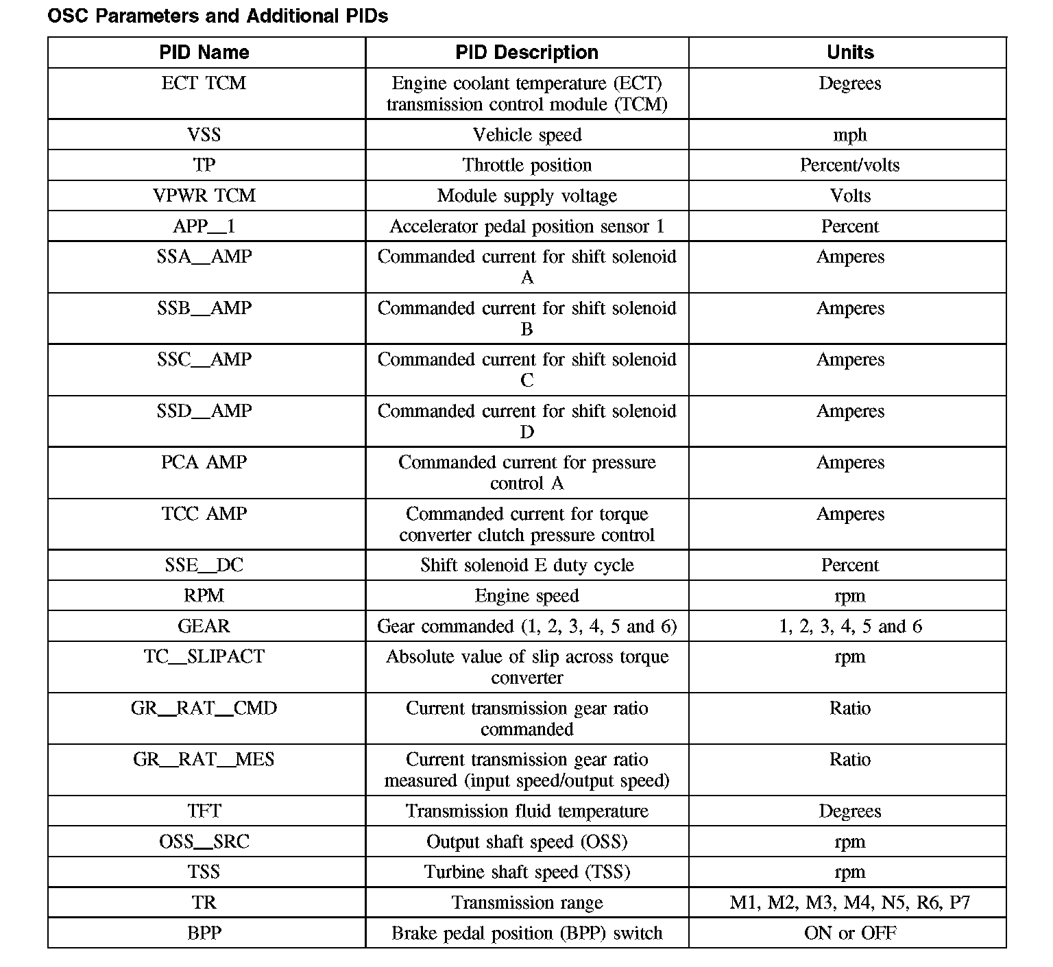 OSC Parameters and Additional PIDs (Part 1):