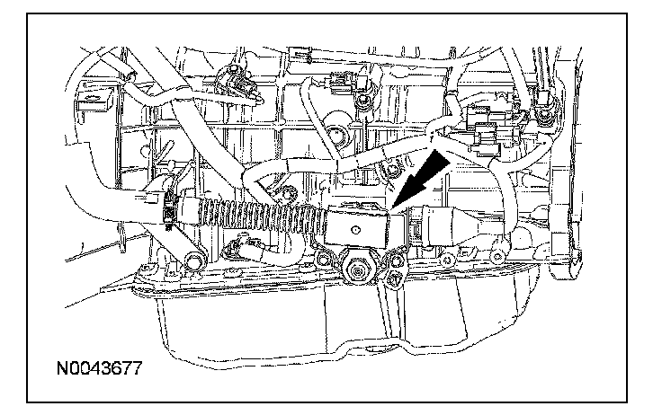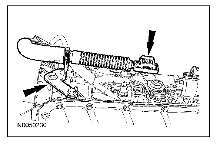 4. NOTE: When installing the selector lever cable, make sure that the selector lever cable locking tabs are locked in place and the selector lever cable end is snapped onto the ball stud. Press the selector lever cable into the selector lever cable bracket and listen for the selector lever cable to click in place. Pull back on the selector lever cable to make sure that it is locked into the selector lever cable bracket. Also make sure that the selector lever cable end is correctly installed onto the ball stud. Pull back on the selector lever cable end to make sure that the selector lever cable end is correctly installed.
