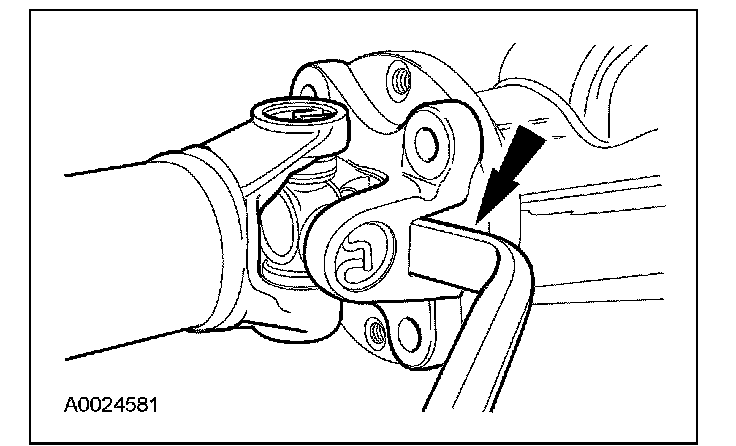 5. CAUTION: The driveshaft flange fits tightly on the pinion flange pilot. Never hammer on the driveshaft or any of its components to disconnect the driveshaft flange from the pinion flange or damage to the component may occur.