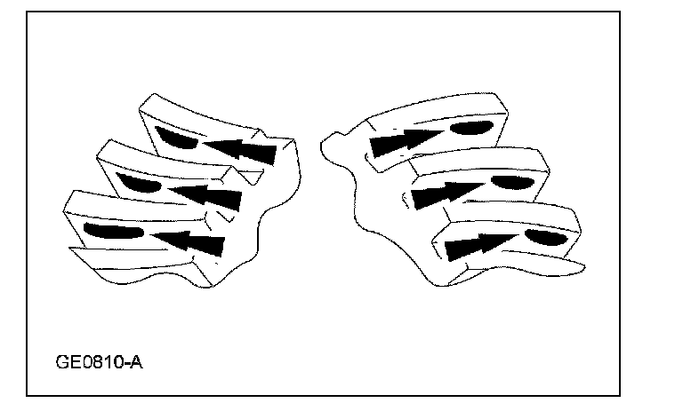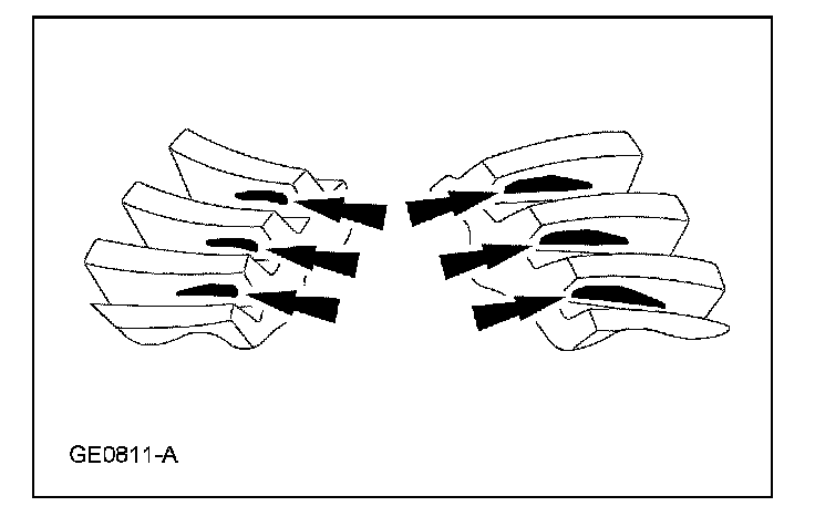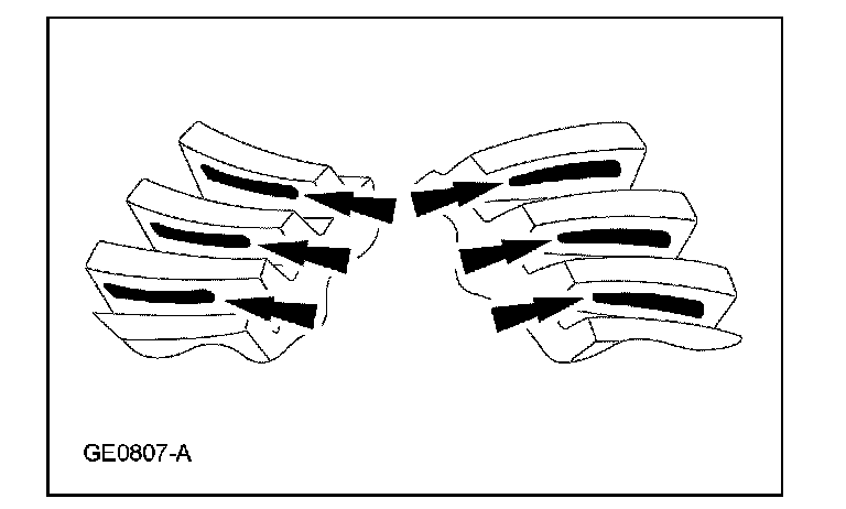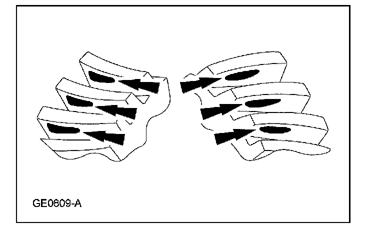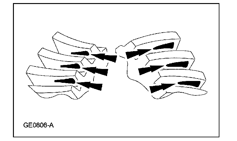 3. Certain types of gear tooth contact patterns on the ring gear indicate incorrect adjustment. Incorrect adjustment can be corrected by readjusting the ring gear or the pinion.