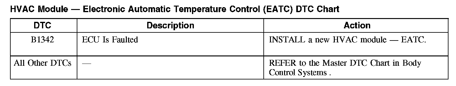HVAC Module - Electronic Automatic Temperature Control (EATC) DTC Chart