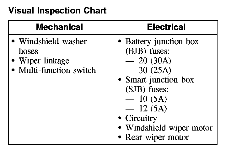 10. If no DTCs related to the concern are retrieved, GO to Symptom Chart - Wipers and Washers. Testing and Inspection