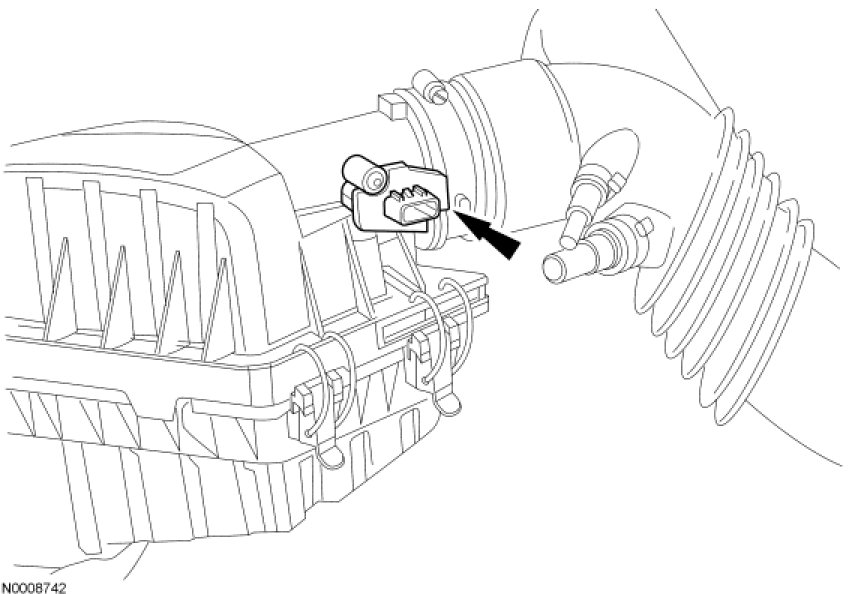 The MAF sensor uses a hot wire sensing element to measure the amount of air entering the engine. Air passing over the hot wire causes it to cool. This hot wire is maintained at 200°C (392°F) above the ambient temperature as measured by a constant cold wire. If the hot wire electronic sensing element must be replaced, then the entire assembly must be replaced. Replacing only the element may change the air flow calibration.