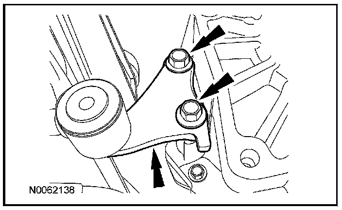 12. Remove the 2 bolts from the lower transmission insulator and retainer bracket.