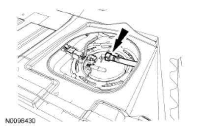 Connect the Fuel Storage Tanker to the fuel tank filler pipe recirculation tube port on the FP module and remove approximately one-fourth of the fuel (from a completely full tank), lowering the fuel level below the FP module mounting flange.